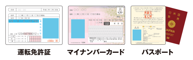 健康保険証/年金手帳/共済組合証/外国人登録証明書/住基カード/在留カード